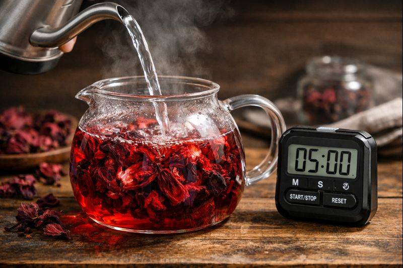 Rebus air sampai 95°C, bukan 100°C. Masukkan 2-3 kelopak kering per 250ml, timbang sekitar 2-3 gram. Steep selama 5 menit kalau lo mau asamnya balance. Terlalu lama? Asamnya jadi dominan dan ada rasa metallic tipis di lidah.