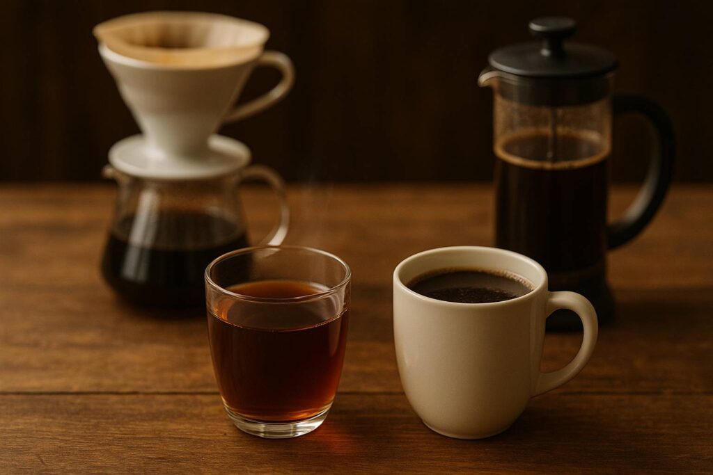 French Press menghasilkan kopi dengan body penuh dan tekstur kaya karena minyak kopi tidak tersaring. Rasanya bold, pekat, dan ada seduhan rasa cokelat atau karamel yang kuat. Bayangkan minum hot chocolate versi dewasa—itu kira-kira sensasinya.