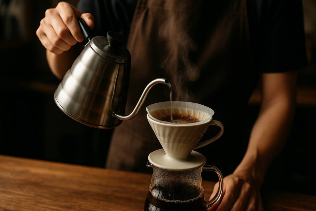 V60 butuh koordinasi mata-tangan yang baik. Kamu harus punya gooseneck kettle untuk kontrol aliran air, mengerti konsep bloom, pouring dalam fase, dan timing yang tepat. Kalau kamu terlalu cepat menuang, kopi under-extracted dan rasanya asam tajam. Terlalu lambat? Jadi pahit menyengat.